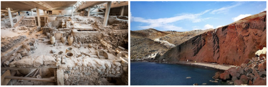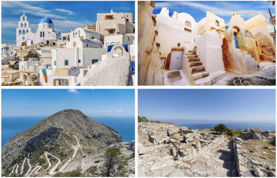 Die archäologische Stätte „Alt Thera“ vom 9. Jahrh. war das Religions- und Handelszentrum der Insel und gilt als bedeutende Sehenswürdigkeit Santorinis.