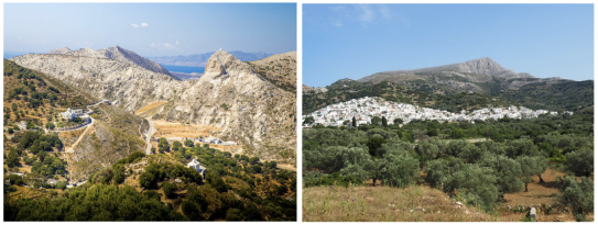 Mit dem Bus -Taxi fahren wir nach Kinidaros. Von dort wandern wir nach Enggares. Dieses Gebiet zählt zum fruchtbarsten auf der Insel Naxos. Die Wanderung führt entlang