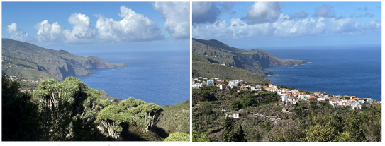 Nachbarinseln am Horizont machen diese Tour zu einem unvergesslichen Erlebnis. Hinab verläuft der Weg bis zur Kapelle der heiligen Jungfrau Maria de las Nieves im oberen Teil von El