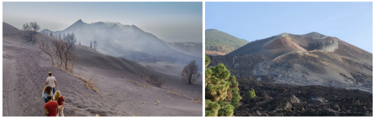 bestaunen wir die die Energie des neuen Cumbre Vieja Vulkans und die mystische Landschaft, die hier in weniger als drei Monaten entstanden ist. Zurück geht’s über den alten Forstweg „Cabeza de Vaca“