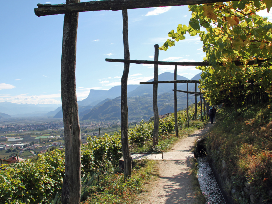 Waalwege führen währenddessen auf die Spuren des Wassers und bieten herrliche Aussichten über das Etschtal.