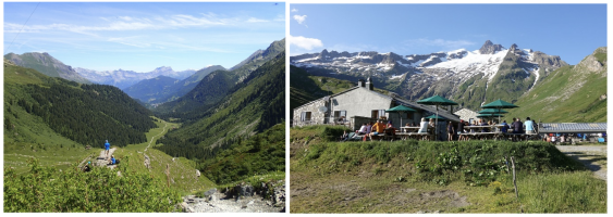 auf den Grand Col Ferret (2.537m) Wir befinden uns in der Schweiz! Es folgt der Abstieg nach Ferret (1.740m), wo wir den lokalen Bus zum Schweizer Seedorf Champex nehmen.