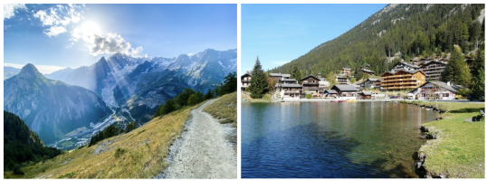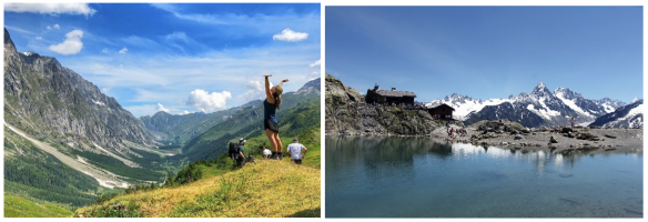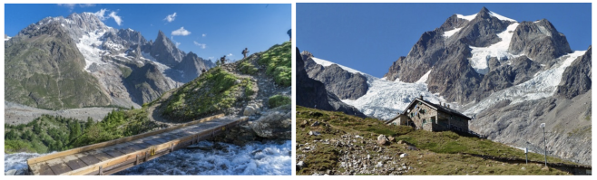 wählen: Die sportlichere über Chalets de Miage, auf der wir ganz nah am Bionnassay Gletscher vorbeikommen. Oder die etwas leichtere Variante, die sich über schöne Waldwege und durch alpine Wiesen via