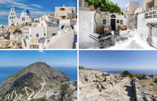 Santorinis. Weiter führt unser Weg über den höchsten Gipfel „Profitis Ilias“ 567m auf Pfaden mit wunderschönen Ausblicken und durch Weinberge zum höchstgelegenen und ältesten Dorf Pyrgos mit seiner