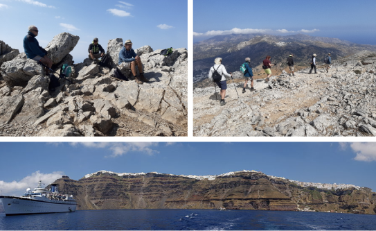 Klippen mit atemberaubenden Blicken auf die Nachbarinseln und das Meer. Mit einem Abstecher zum Skaros Rock der 20 Meter hoch in die Caldera hineinragt, verläuft unsere Wanderung zum größten Teil auf