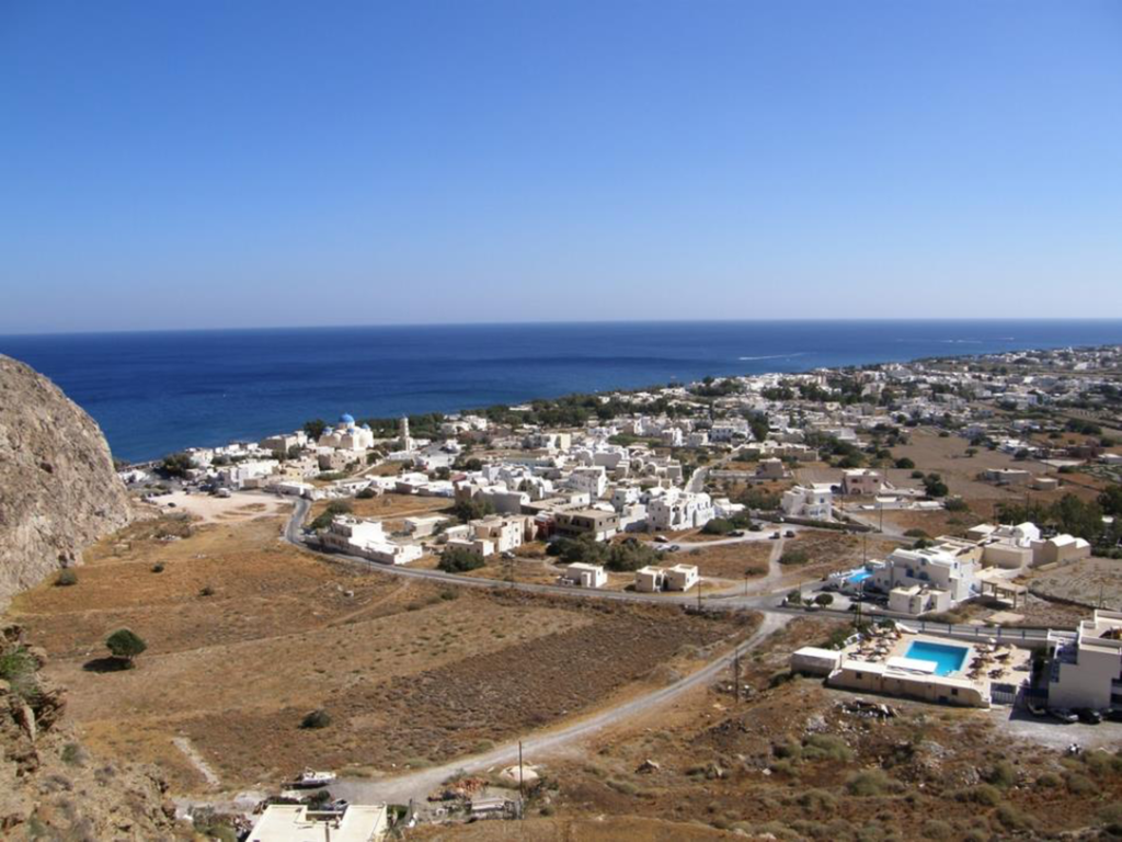Perissa. Von hier wandern wir hoch in das antike Thira. Die archäologische Stätte „Alt Thera“ vom 9. Jahrh. war das Religions- und Handelszentrum der Insel und gilt als bedeutende Sehenswürdigkeit