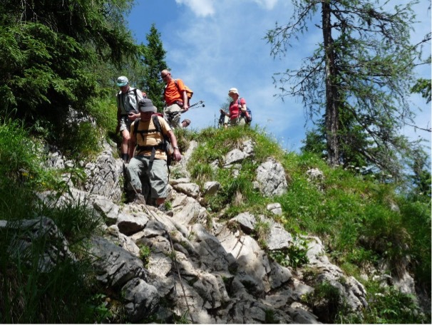 Der Blick sollte immer dahin gerichtet werden, wohin die nächsten Schritte gesetzt werden. Blicke in die Tiefe oder in die Ferne sollten während des Gehens vermieden werden. Wer trotzdem Fernblick genießen will, der sollte eine kurzen Stopp einlegen.