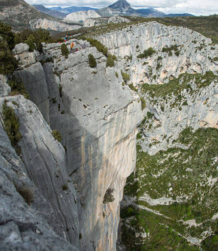 Kommt man um den Blick in die Tiefe z.B. beim Abstieg nicht herum, dann sollte man möglichst dafür sorgen, dass kontrastreiche Objekte im seitlichen Blickfeld stehen, z.B. Felsen, Büsche oder Bäume.